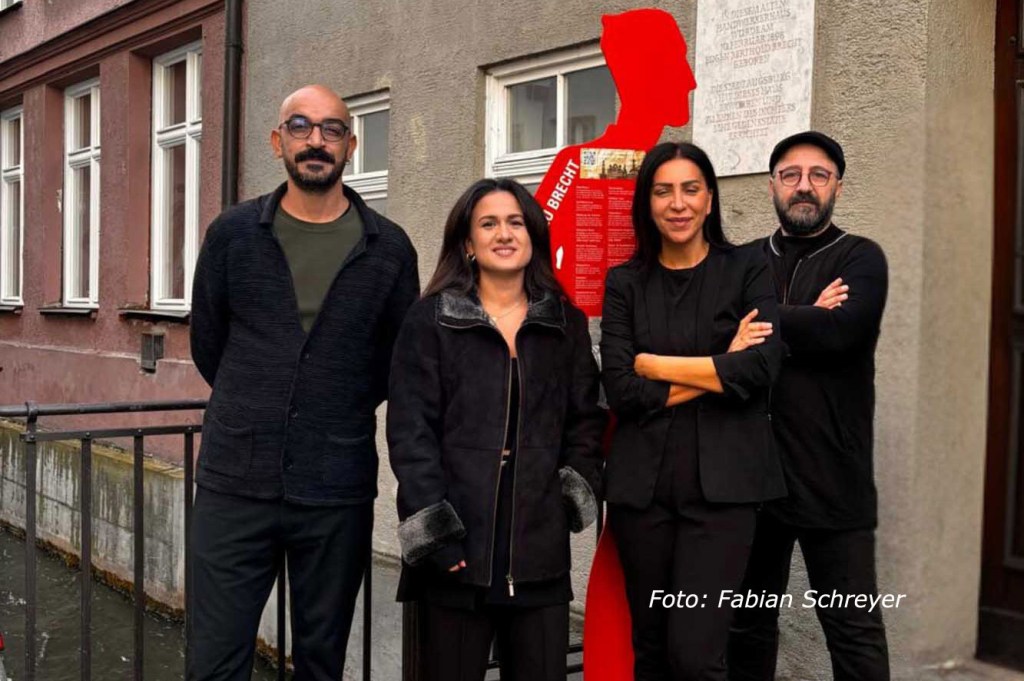 ย Von links: Hรผseyin Yฤฑldฤฑz, Gamze Gรถrgรผn, Aytรผl รzel und Dรผzgรผn Polat. Bertolt Brecht und Nรขzฤฑm Hikmet